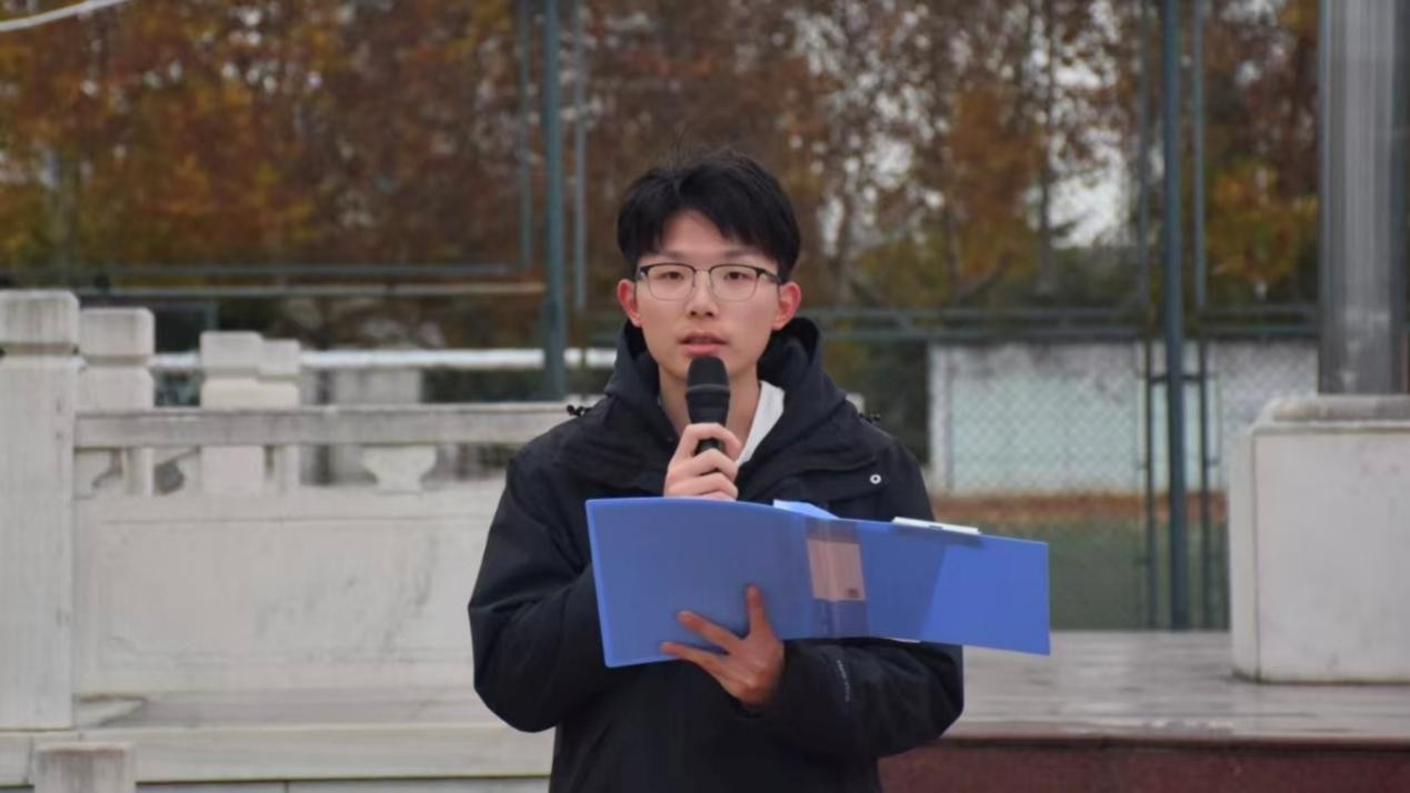 活动在庄严的“升国旗、奏唱国歌”仪式中拉开序幕。随后的国旗下分享环节,优秀学生代表依次发言:濮嘉豪以“破圈、铸剑、立志”为核心,结合参会参赛经历,呼吁同学们将小我融入时代;吴越在《以科研为炬,燃青春之光》中,讲述了参与“青鸾计划”并斩获竞赛奖项的科研历程;黄玺蓉则以《以科研之笔,绘创新之梦》为题,结合自身发明专利经历,鼓励新生勇于试错、在探索中成长。三位学生代表的真挚分享,令现场学子深受触动、收获颇丰。