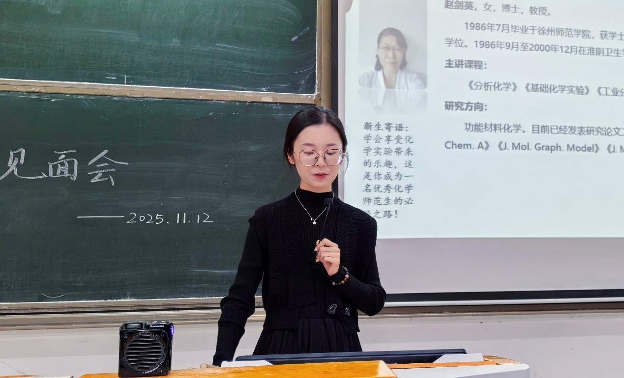 11月12日,化学化工学院化学(师范)专业在崇文阶104举办25级师生见面会。本次活动旨在帮助新生熟悉学院环境、明确专业方向,搭建师生交流平台、激发新生的学习热情。学院领导、25级全体新生及高年级学生代表共同参与了本次活动。