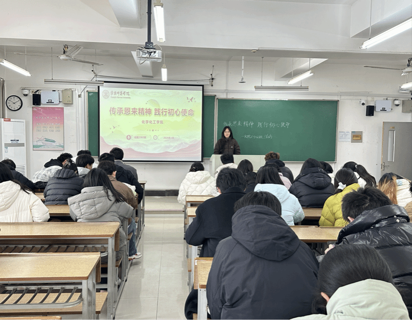 3月3日,化学化工学院2302班于弘文楼2-401教室开展“传承恩来精神,践行初心使命”主题活动。本次活动旨在纪念周恩来总理诞辰128周年,引导班级同学缅怀伟人功绩、传承崇高精神,将爱国情、报国志融入日常学习与生活。