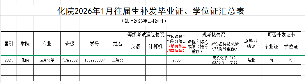 经化院学位委员会评议,化院2002班王希文同学已达到学校毕业条件和学位授予条件,同意该生补发毕业证书、学位证书的申请。