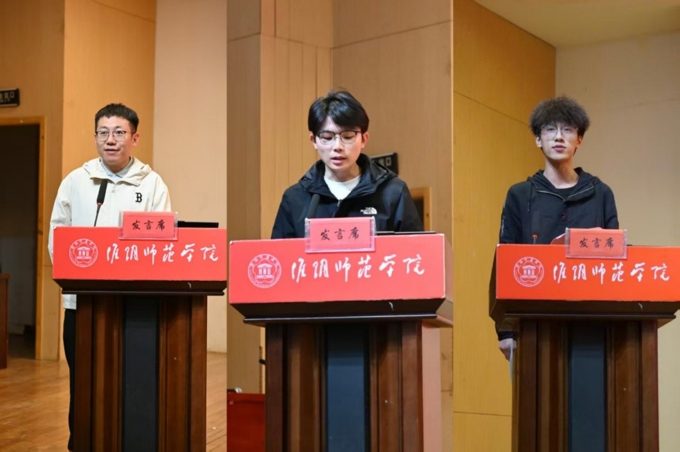 学生代表濮嘉豪、王涛依次发言,他们结合学习、科研、竞赛与考研经历分享成长经验,引导同学们勤学笃行、提升自我、明确目标,共促优良学风建设。